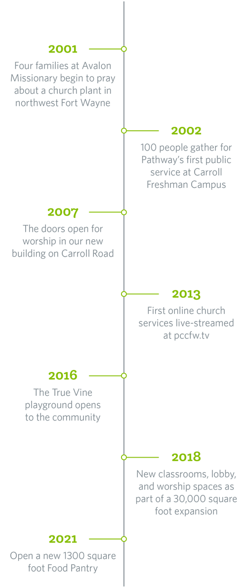 Below are a few ministry highlights from the past 20 years that exemplify our mission and values—snapshots of what God has been doing over the lifetime of Pathway Community Church. He is so good, and we are grateful to have been part of it all. Here’s to many more years of leading people into full life in Jesus Christ!